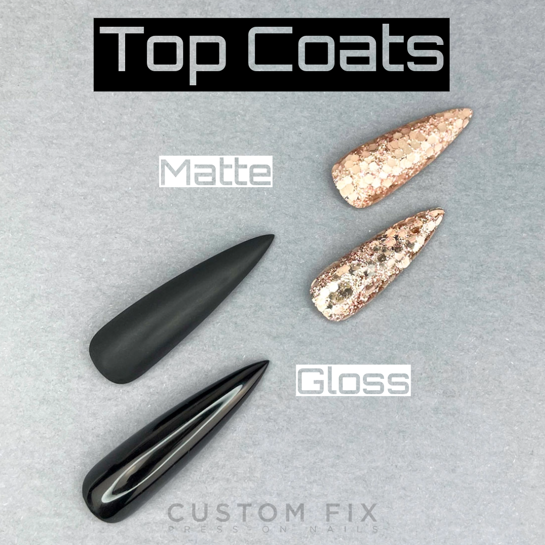 Gloss gives a glass like feel and look. Super reflective and shows all the details in glitter and layered designs.