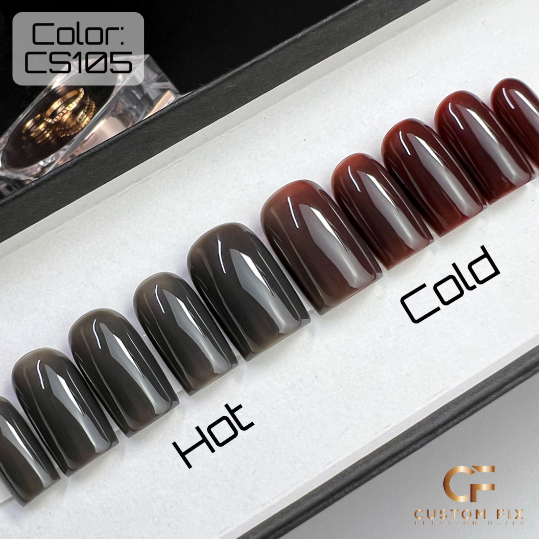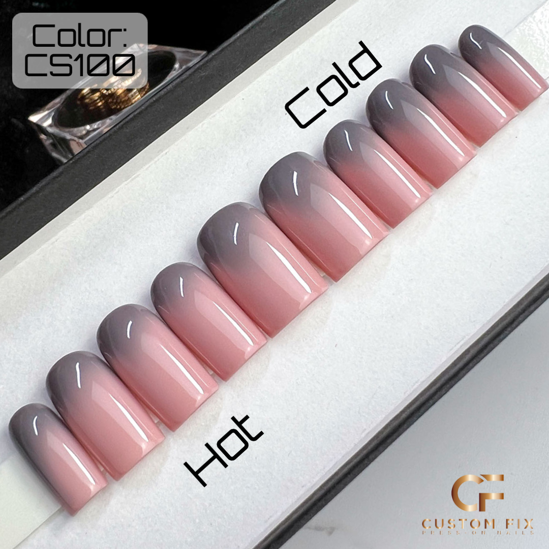 - CS100 shifts from a deep gray when cold to a pink nude when hot