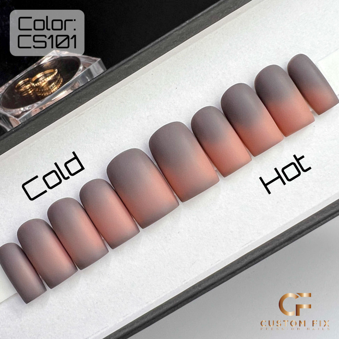 - CS101 shifts from a warm gray when cold to a tan nude when hot