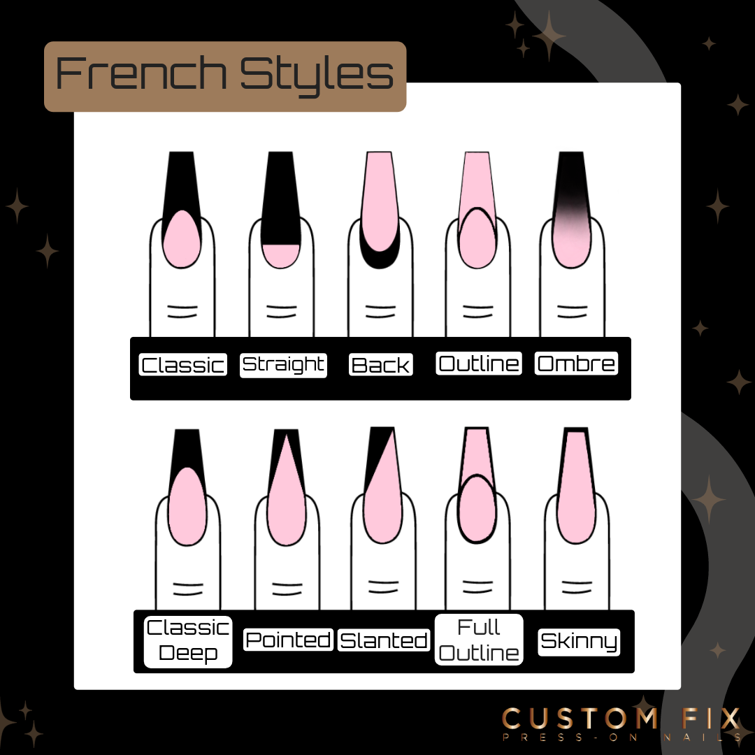 Meet the ultimate OG of the nail game – The French Manicure! You can choose from 28 bases, 54 tip colors and 10 styles, finding your perfect match is a breeze. Whether it's a regular Tuesday or a glam night out, let your nails steal the show with the timeless French Manicure Fix! Because why settle for ordinary when you can have extraordinary nails? 💅✨
