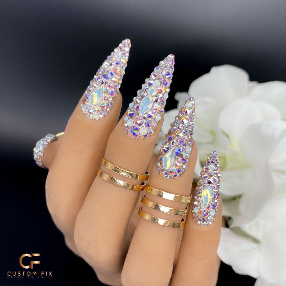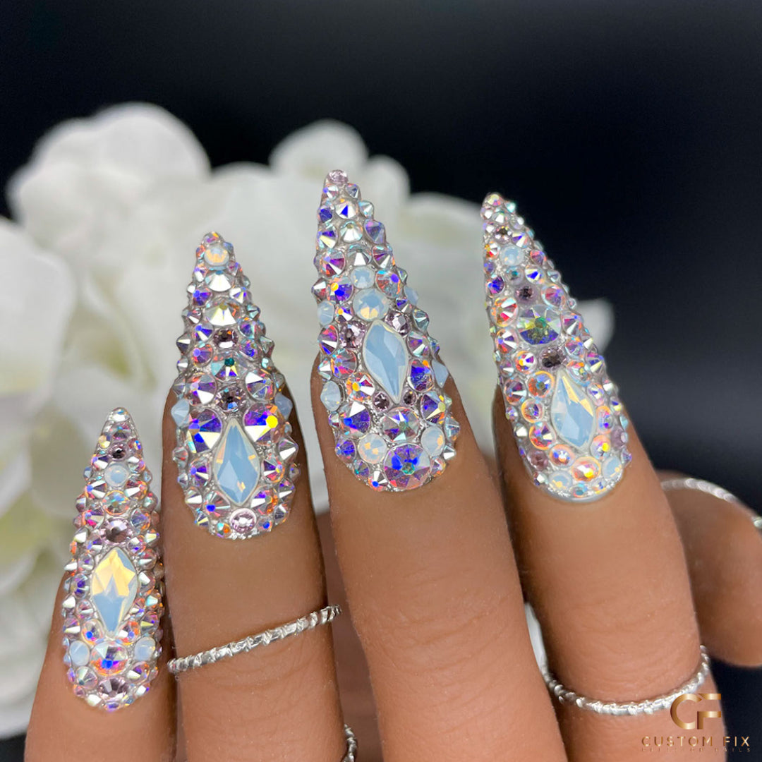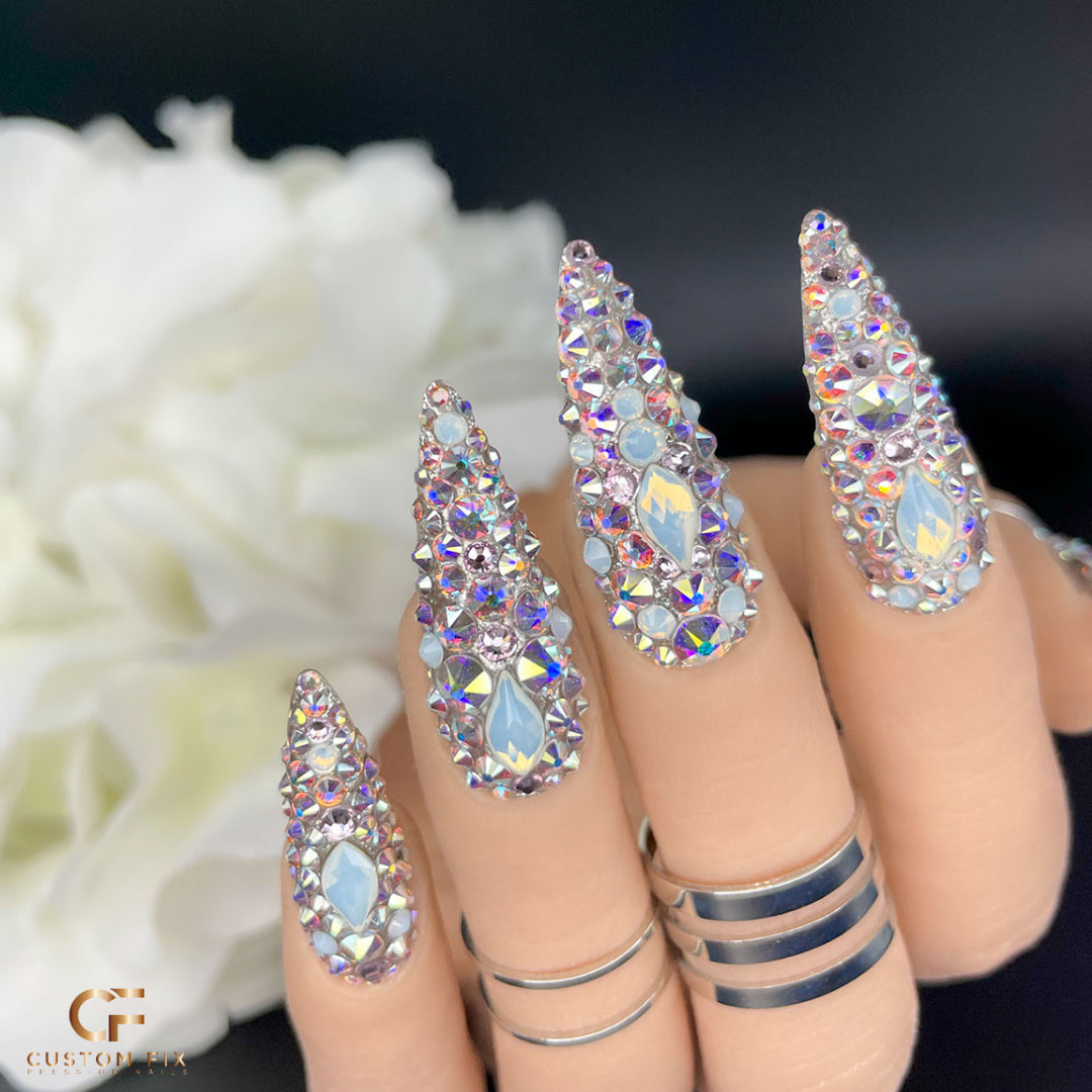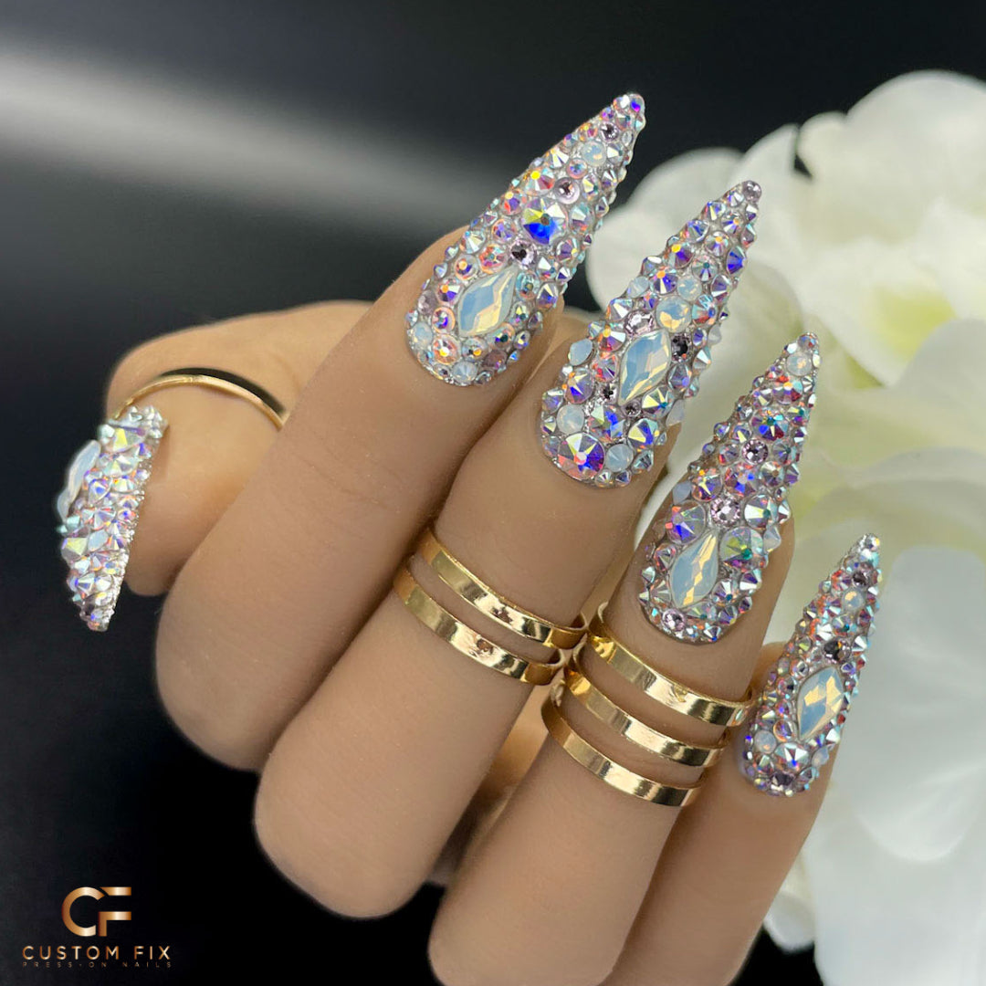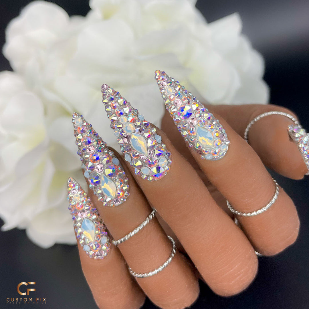 So much sparkle! Every single nail is DRIPPING in Swarovski crystals for this Fix! So freaking gorgeous! And of course you can choose your crystals. Just let us know what color of crystals you would like in the "crystal notes" box. *Crystals pictured are a mix of AB and opal.