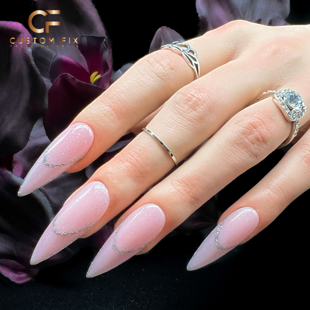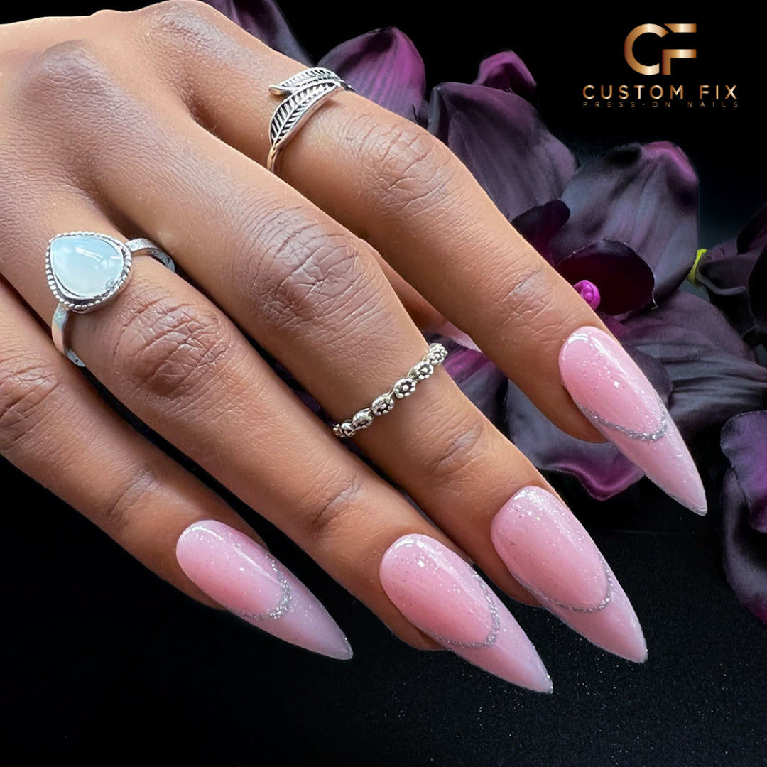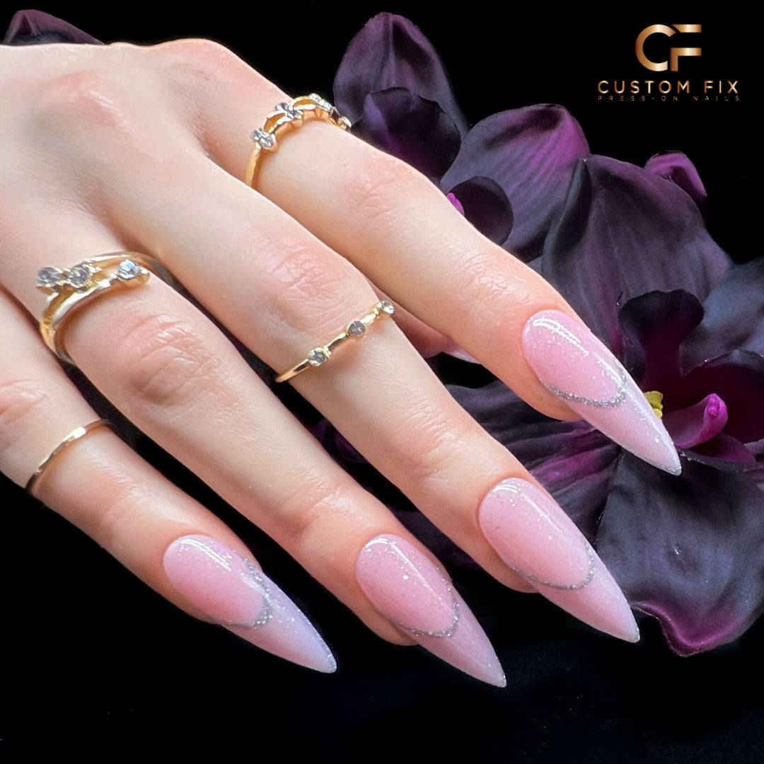 Sweet and simple with a twist. The Flash Fix gives us daydreamer vibes with this delicate pink topped with the tiniest holo glitter, not to mention the outlined design in flash glitter! Is there anything better?