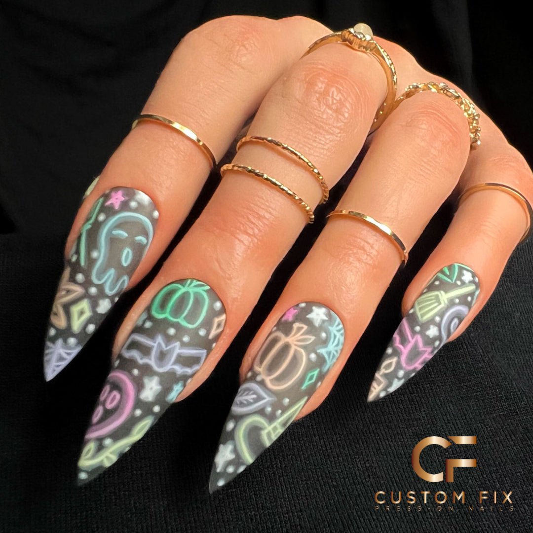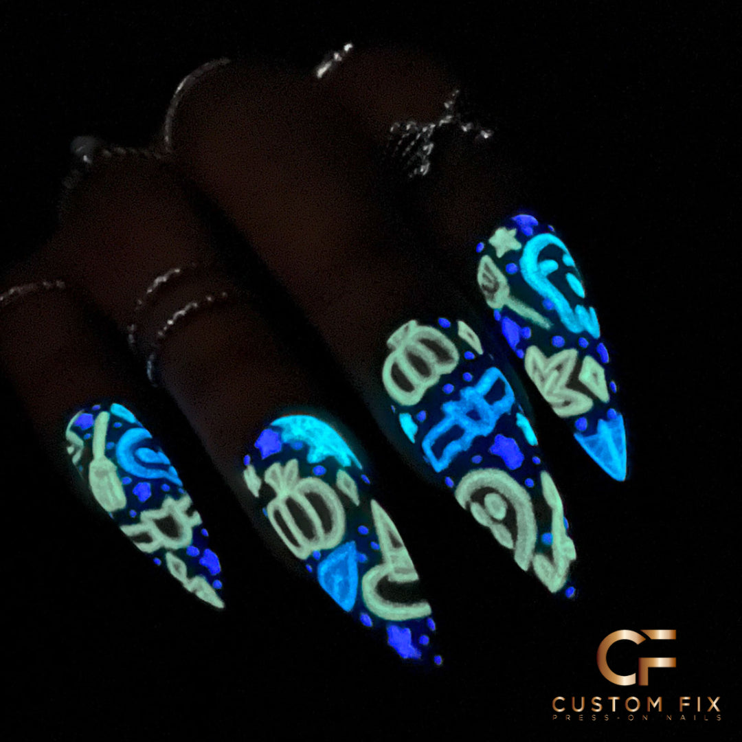Oh this set is soooo fun! It's like, if Halloween was a neon light sign but in a pastel color scheme. And of course they glow in the dark!