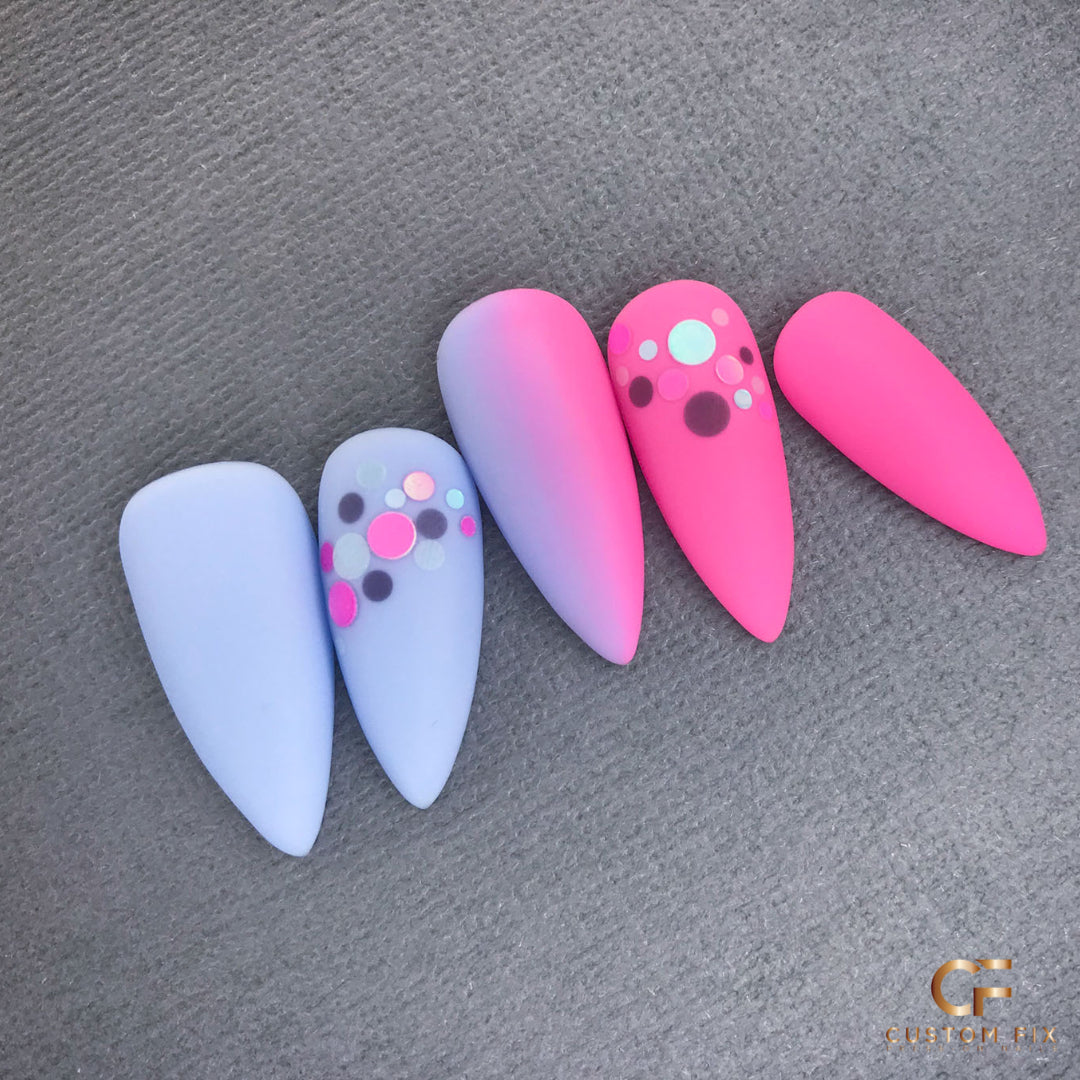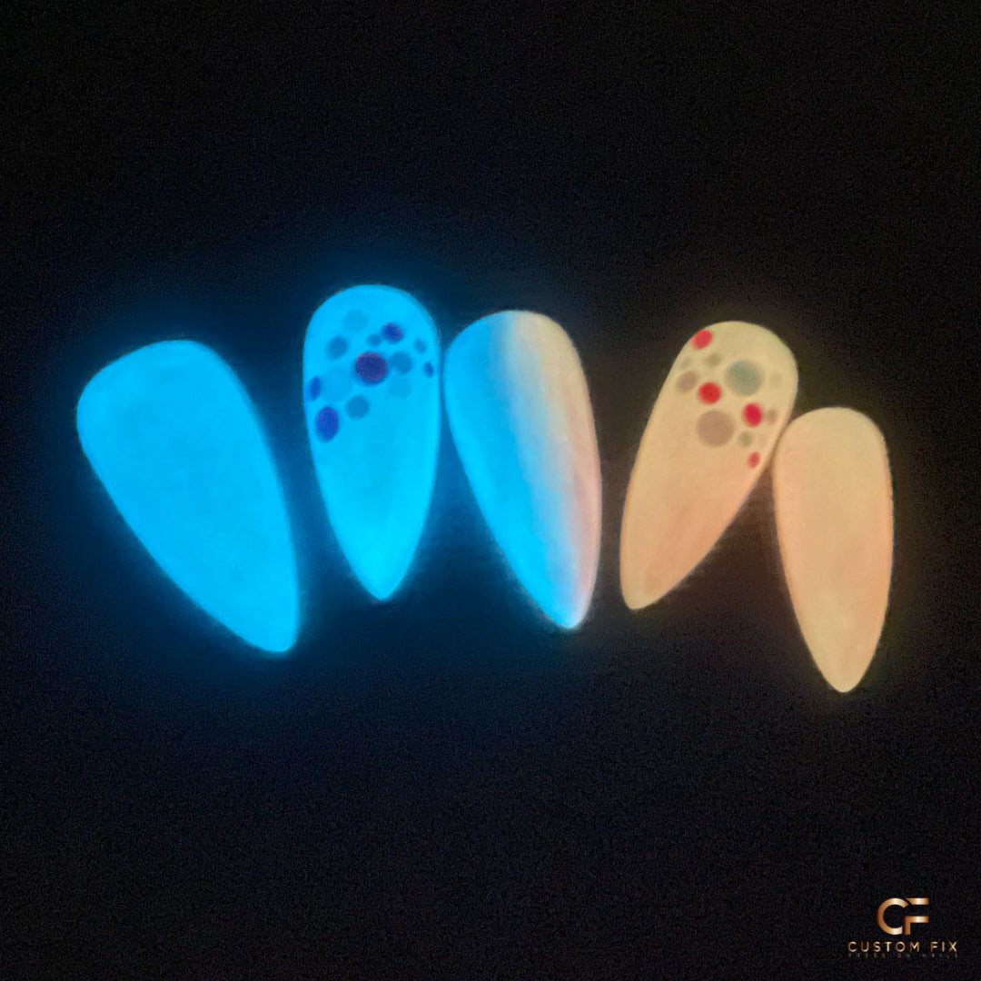 I love this Fix! The pink and blue ombre so beautifully together. Then add cute circle glitter dots. Oh yeah, and it glows in the freakin dark! So rad! Did I say I love this set!?!