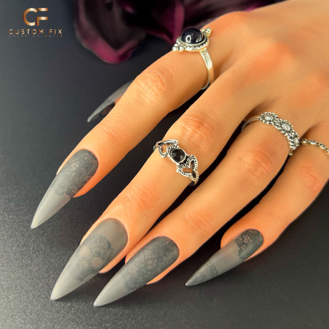 Hello to the QUEEN of all colors; the most elegant, classic, mysterious and sophisticated! A black set of nails is just always a good choice. Plus this Fix has lace and skulls - like come on, that's good! Honestly just a PERFECT Fix!