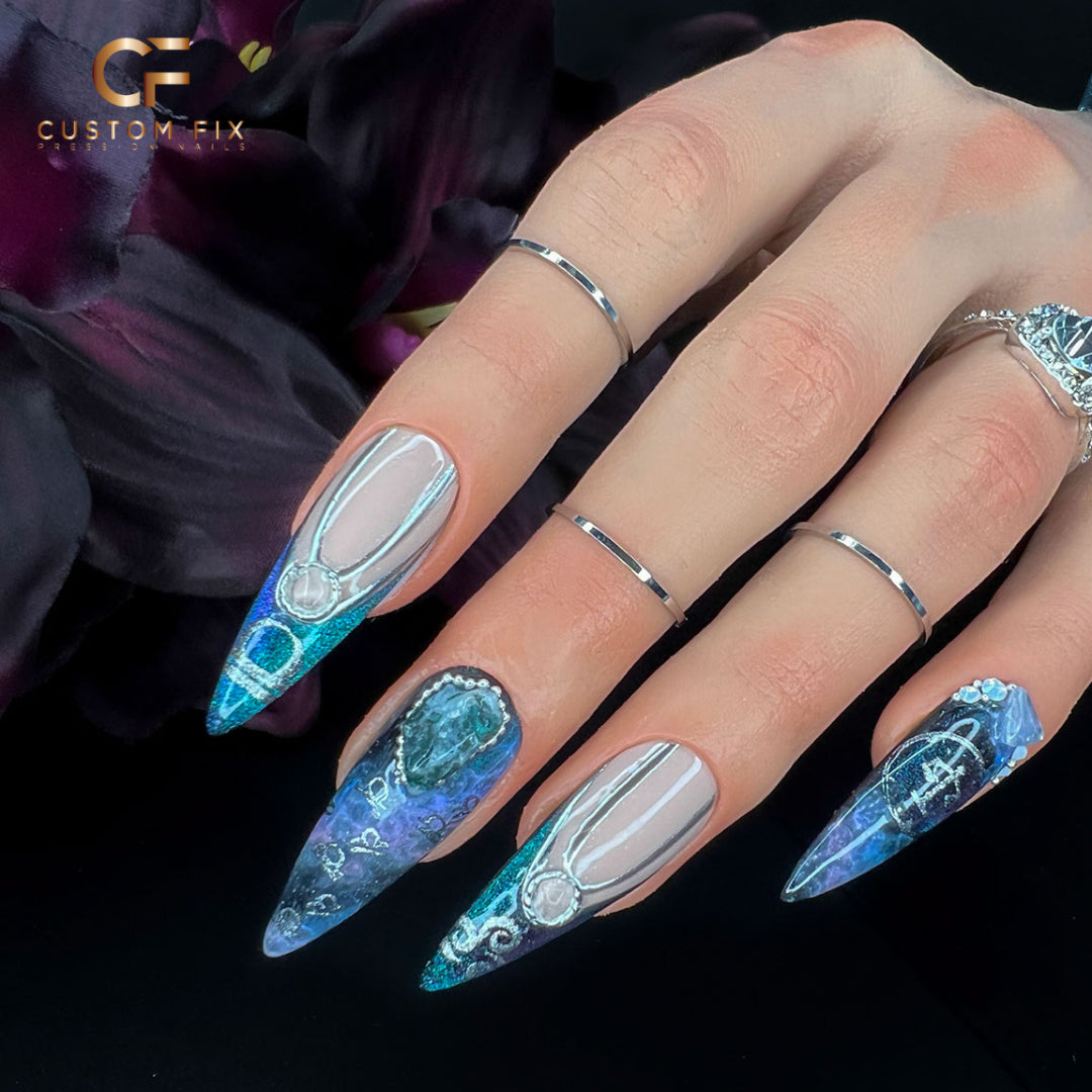 *Due to the added crystals, these nails may require a bit more care to maintain their sparkle. Such as, using a brush when washing your hands to remove any dirt that has gotten caught between crystal, gentle handling during application and removal is essential to prevent damage to the crystals, additionally, avoiding harsh chemicals and impact activities can help preserve the appearance.