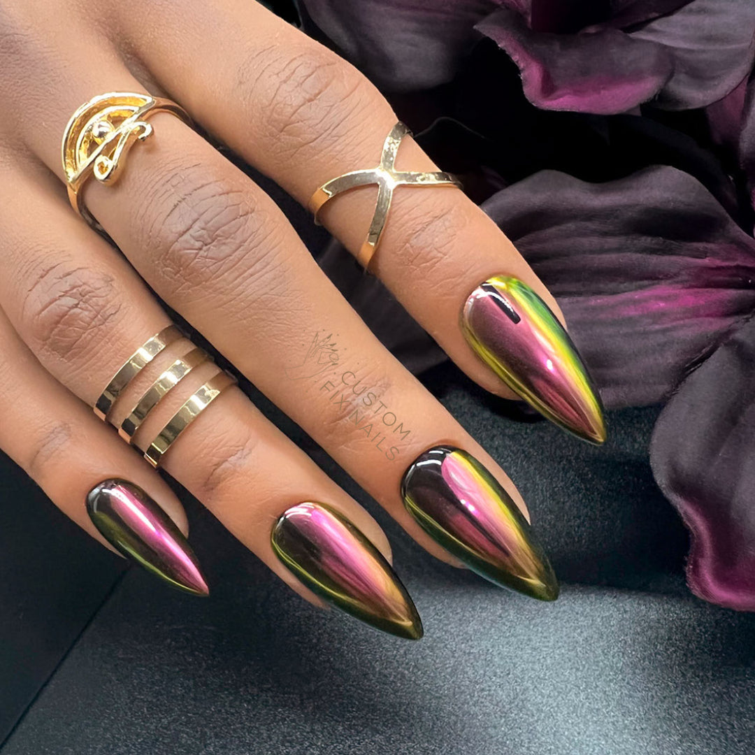 The Oil Slick Fix is absolutely UNREAL!! Just look at how smooth that chrome is; that freakin shine (had the hardest time trying not to get my reflection in the photos haha); and that color shift! And that little black detail, like BYE, how can you be so perfect?! Of course there are 5 RAD colors to choose from! We understand if you can't choose just one. Get all 5, we won't judge!