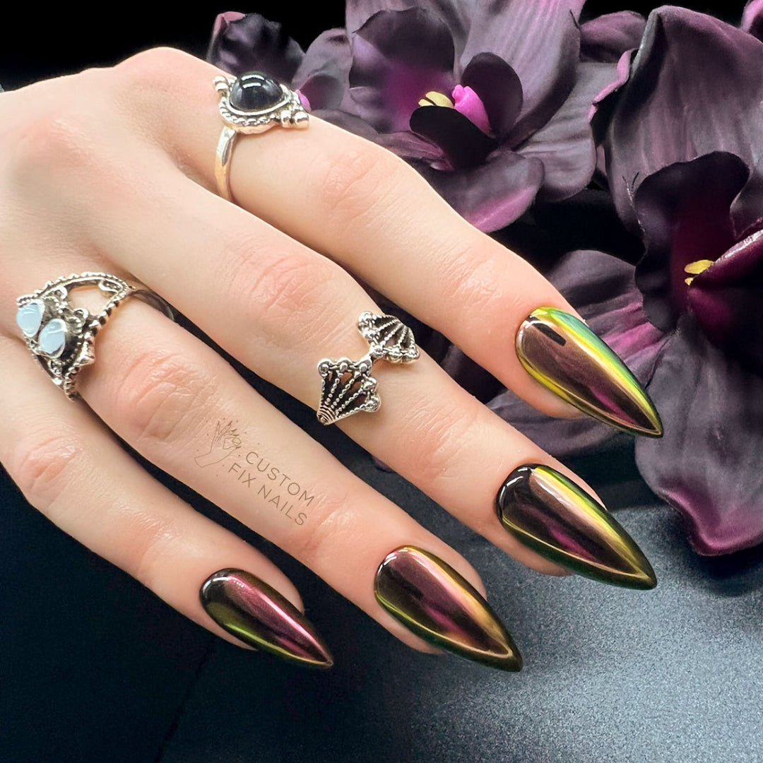 Due to the nature of these being handmade, the design may look a little different on each nail. But all amazing!
