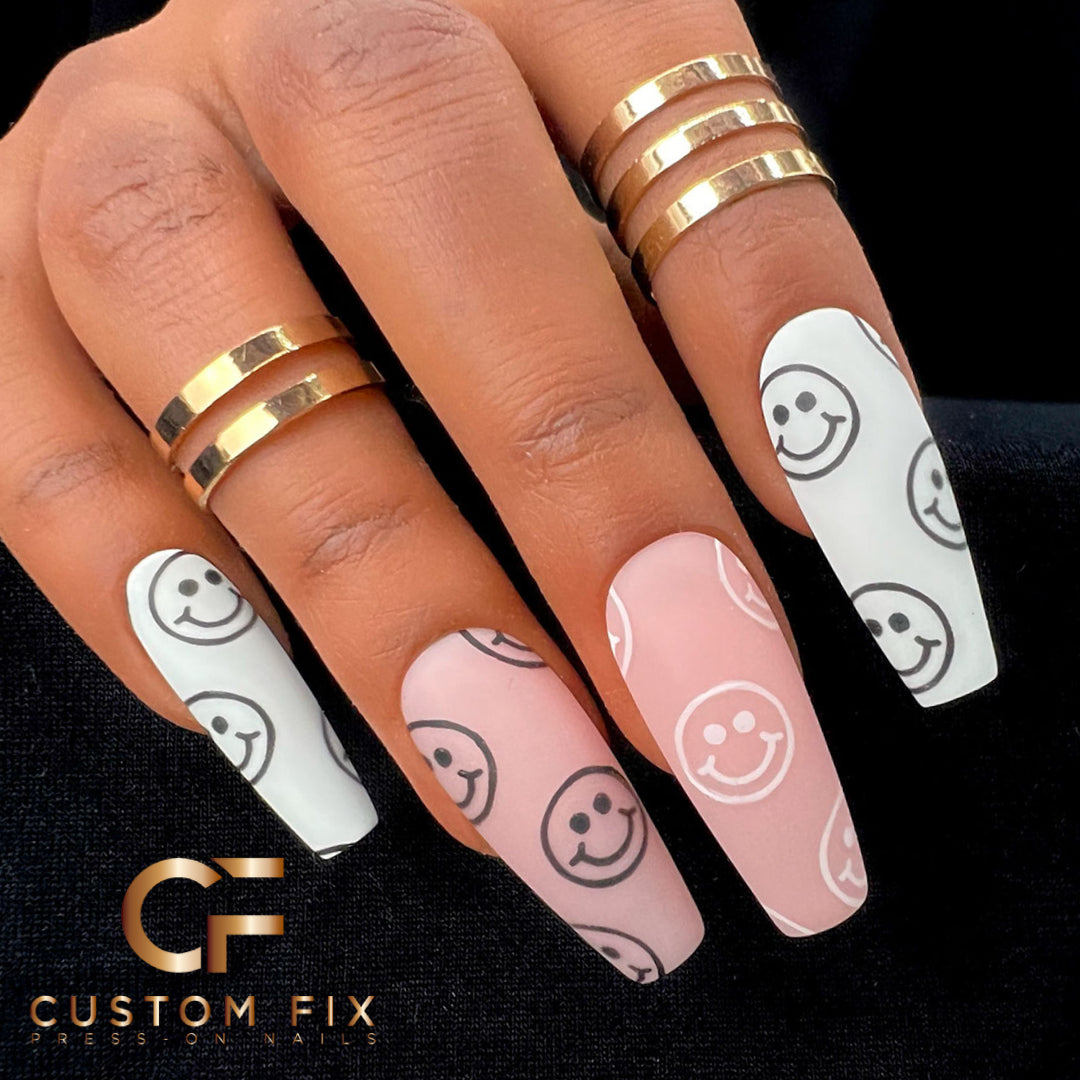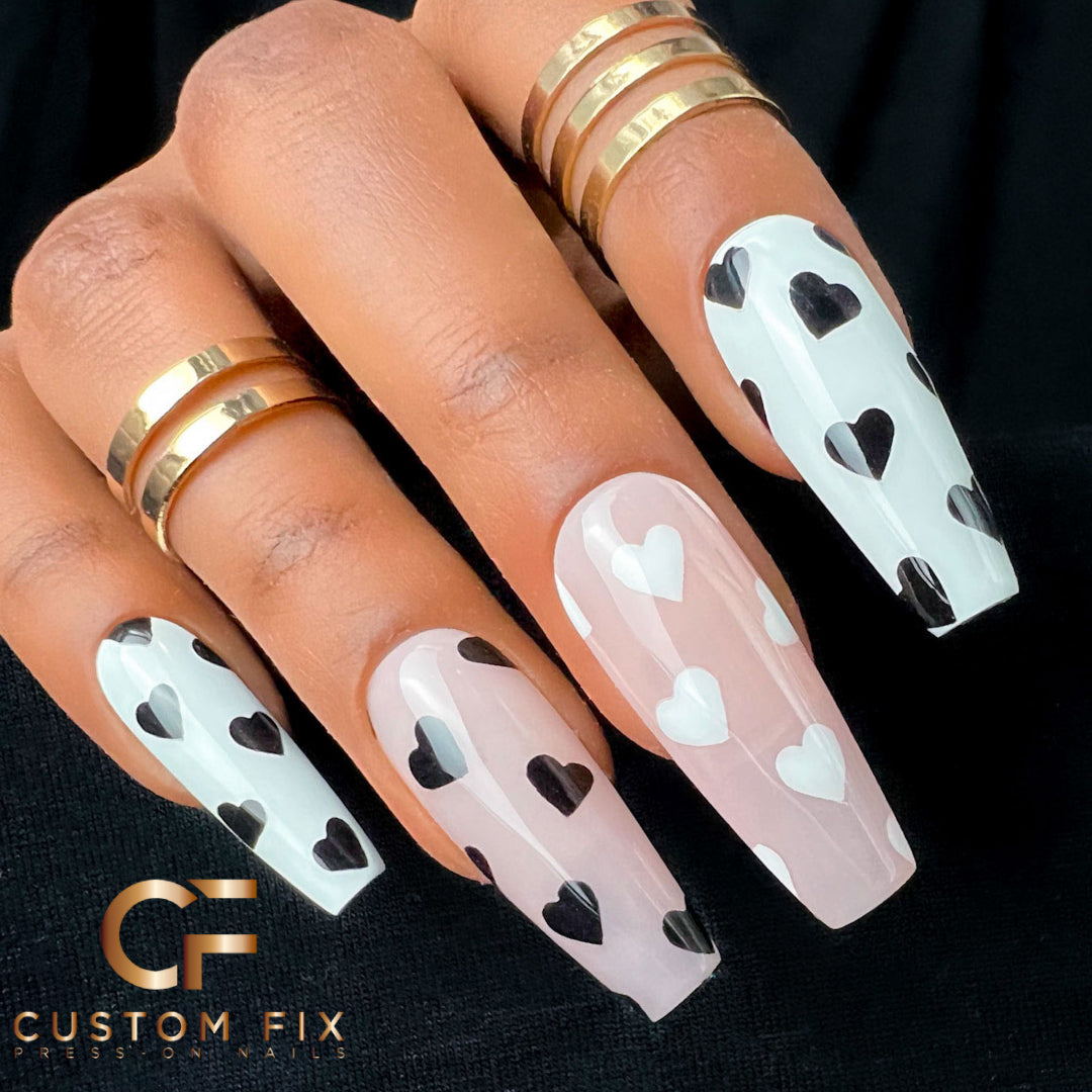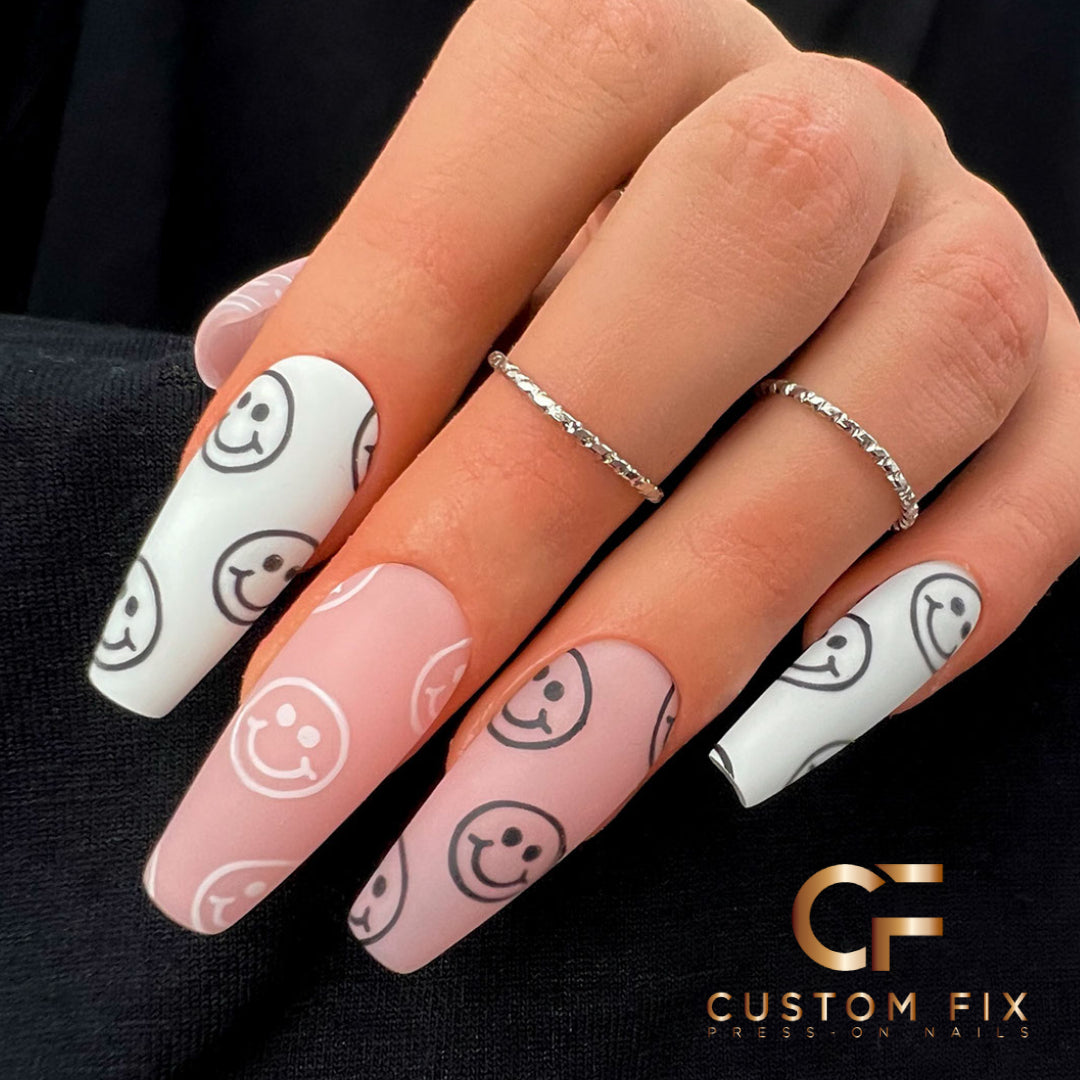 Introducing the Print Fix - a harmonious blend of classic black and white elegance paired with delectable nude tones. Choose your perfect nude match and personalize your set with charming prints: opt for playful Smiles, romantic Hearts, or embrace the balance with Yin & Yang.