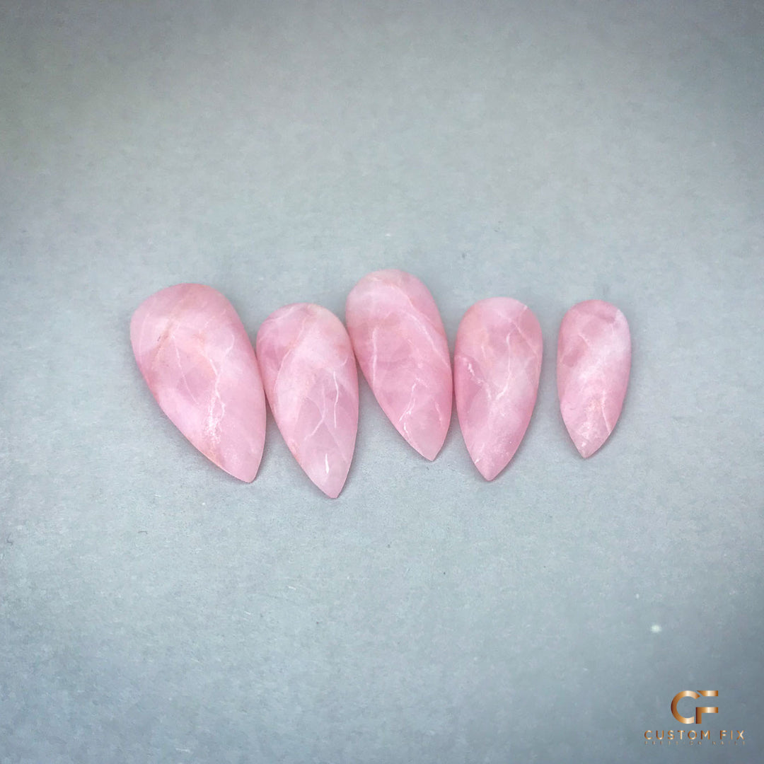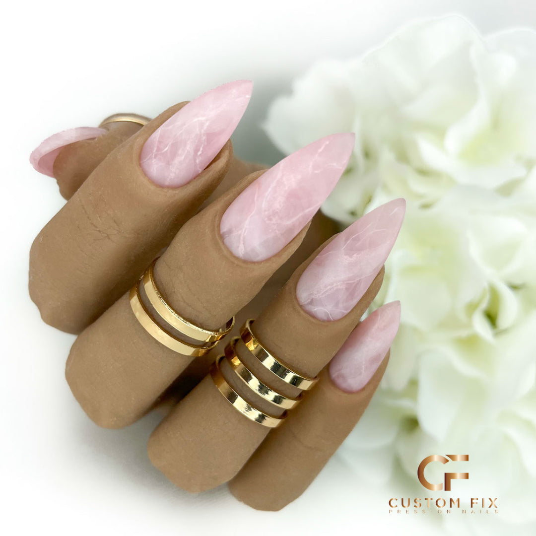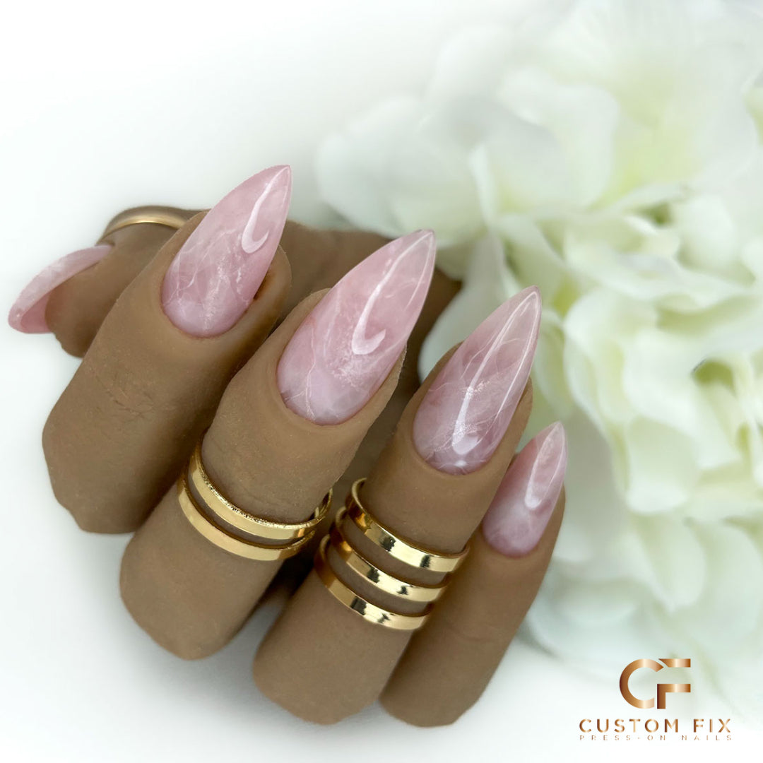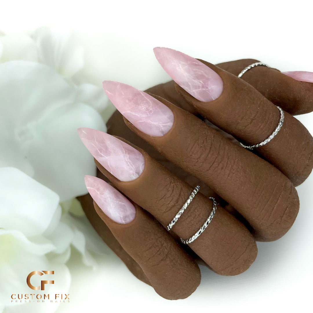 This is one of my all time favorites! I could wear this Fix everyday. There is so much depth to this rose quartz design. Beautiful pinks, a touch of white, and just the tiniest of rose shimmer. Add matte top coat for a natural stone finish or a glossy top coat for a more polished stone look.
